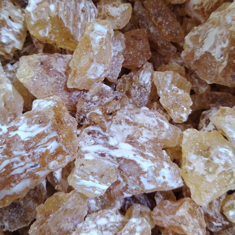 - الشكل: فصوص نقية صمغية من لحاء الشجرة